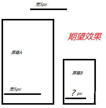 我们期望的,往往是这种效果,所以这条线在屏幕B上,不能是5px,但是具体是多少px呢? 现在我们是不知道的,不如我们来动手算算吧~各位是不是都跃跃欲试了?