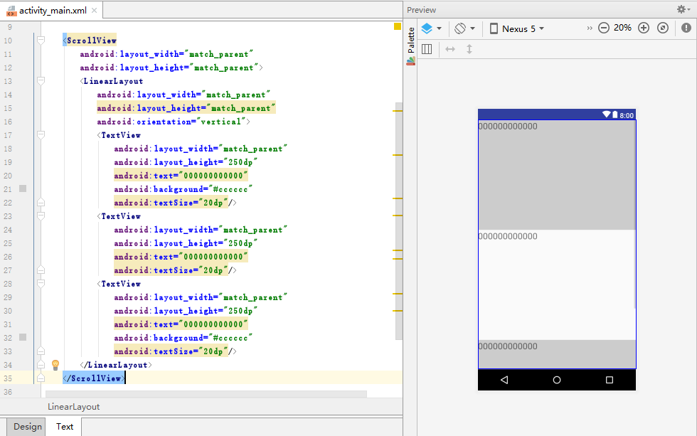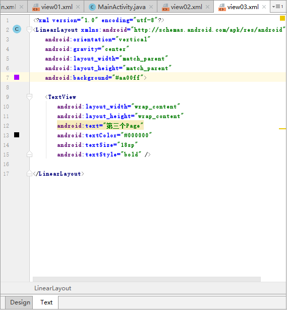 注意:需要三个相似的布局文件,这里只贴出一个。