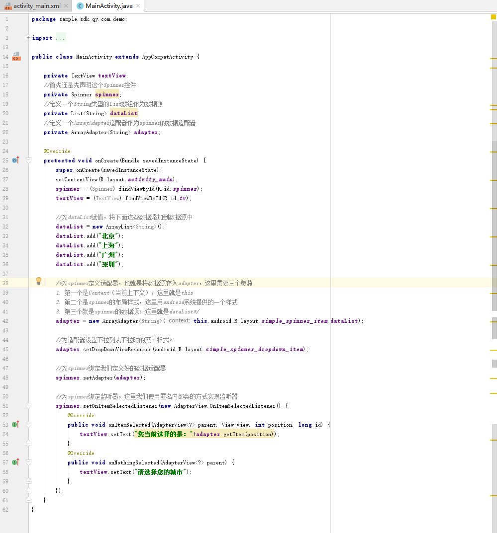 android:spinnerMode:列表框的模式,有两个可选值: dialog:对话框风格的窗口 dropdown:下拉菜单风格的窗口(默认)