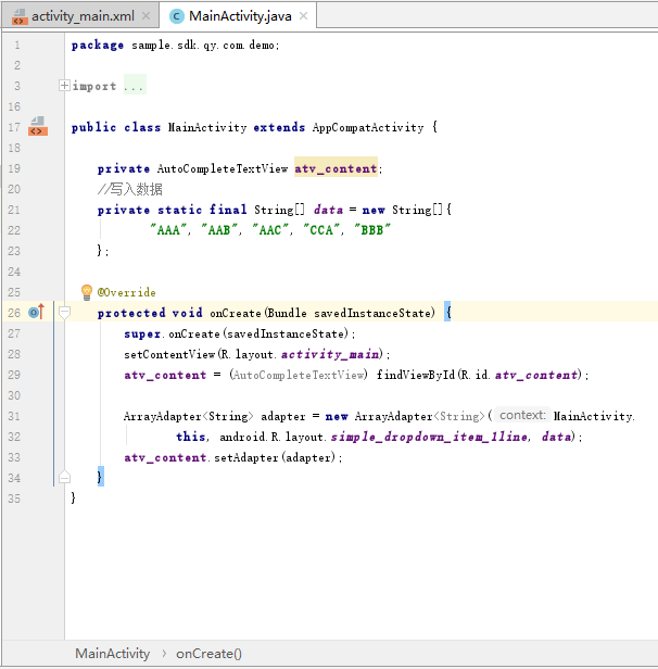 android:completionThreshold:指定用户至少输入多少个字符才会显示提示