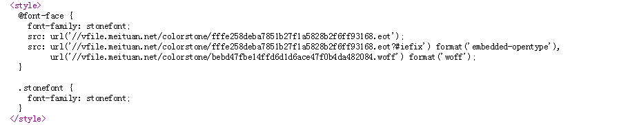通过查看源码,可以找到如下内容, 而当我们访问这里面的链接的时候,就可以下载相应的字体文件,关于font-face可以点击这里查看了解:
