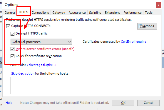 第一步:打开Tools – Options,然后将弹出窗口内HTTPS选项下的所有可选项都勾选上。