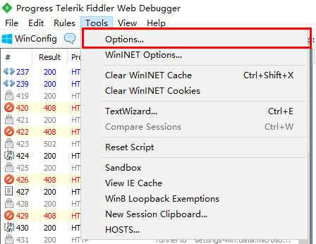 除了采集电脑浏览器的网页会话外,Fiddler还能采集手机APP的会话信息。当然,这还是需要经过一番设置才行。步骤如下: