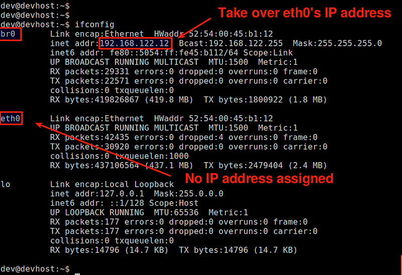 $ sudo apt-get install bridge-utils $ sudo brctl addbr br0