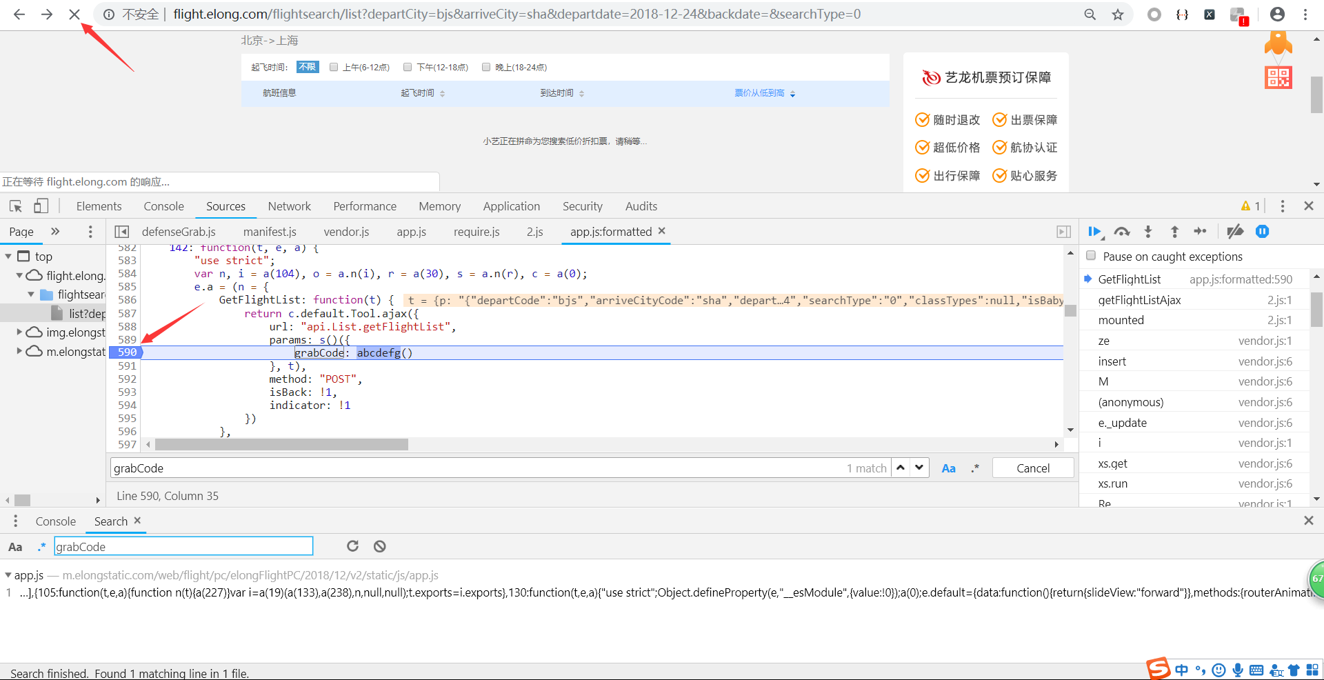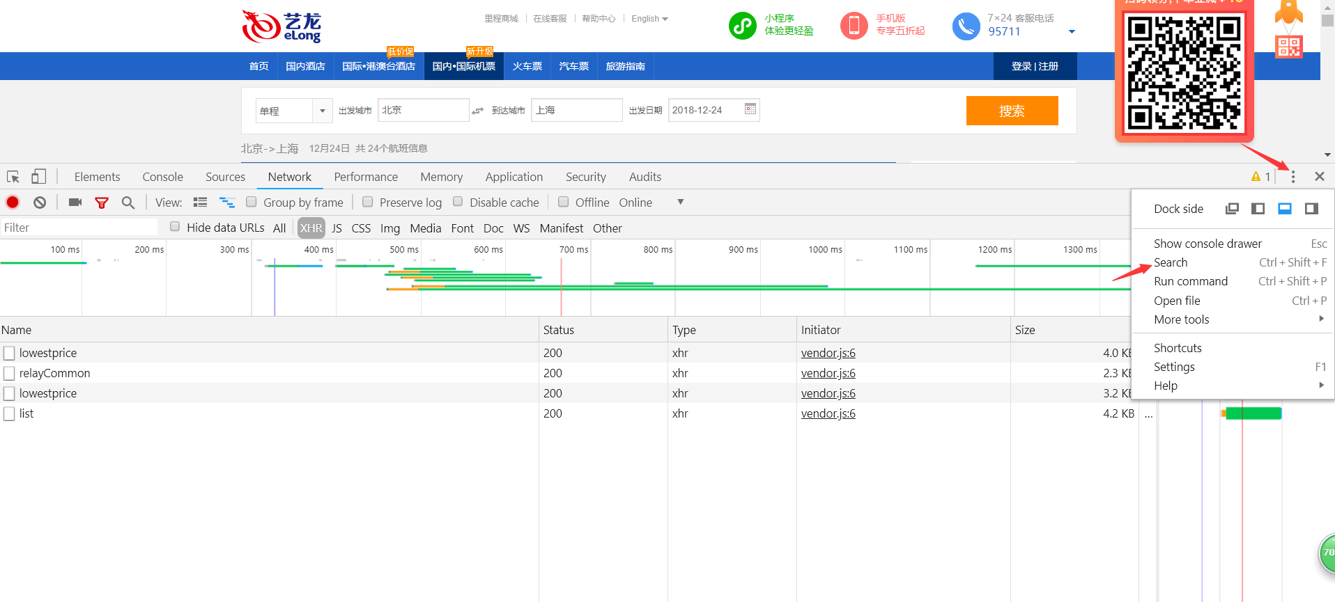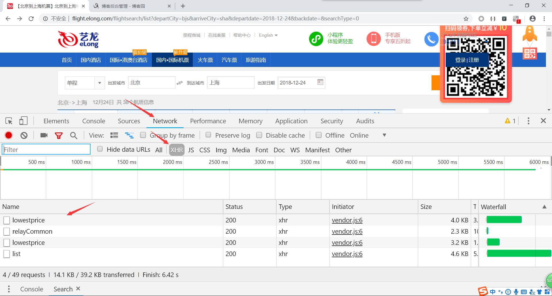 进入艺龙机票列表搜索页,附上链接http://flight.elong.com/flightsearch/list?departCity=bjs&arriveCity=sha&departdate=2018-12-24,链接参数日期自行更改。