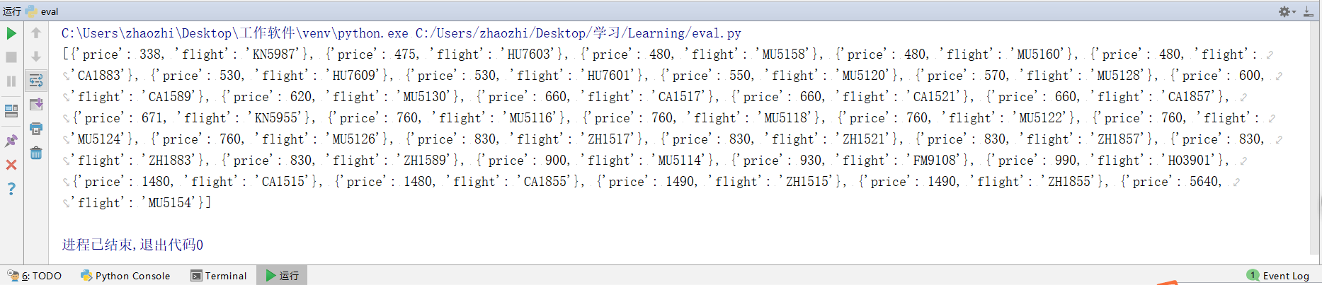 html = json.loads(html)["flightSelections"] #创建结果列表