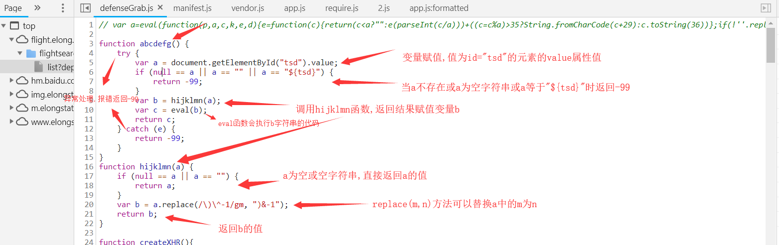 上图对abcdefg函数做了一个解析,了解生成过程,总结一下就是调用网页源代码中的id为tsd的元素的属性值value,替换字符串中的某个值,并调用eval把字符串执行。