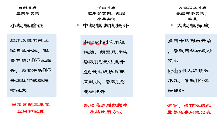性能是一个逐步提升的过程,测试过程中需要找到扩容的模型,从不足50的TPS提升至万级