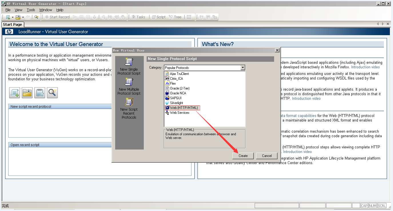 1、新建脚本,选择Web(HTTP/HTML)协议;