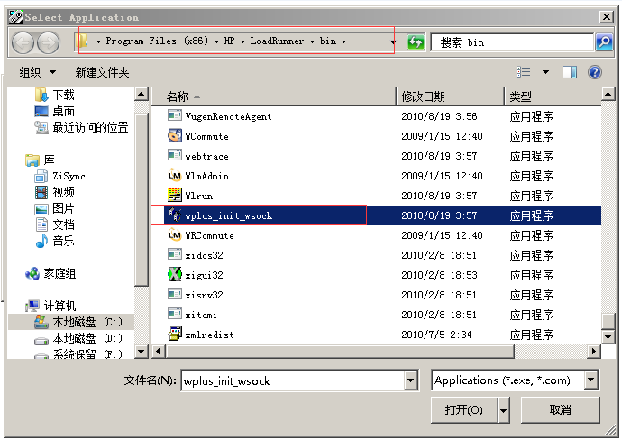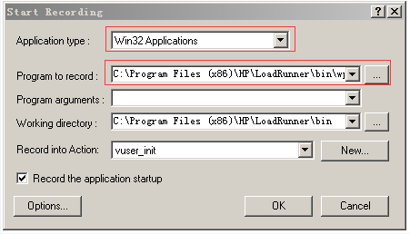 Program to record:选择Loadrunner安装目录下的wplus_init_wsock.exe工具