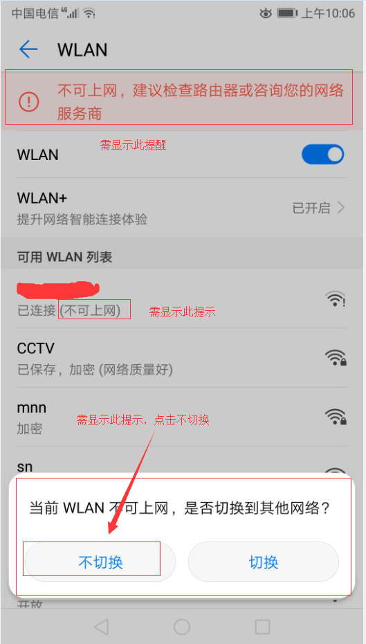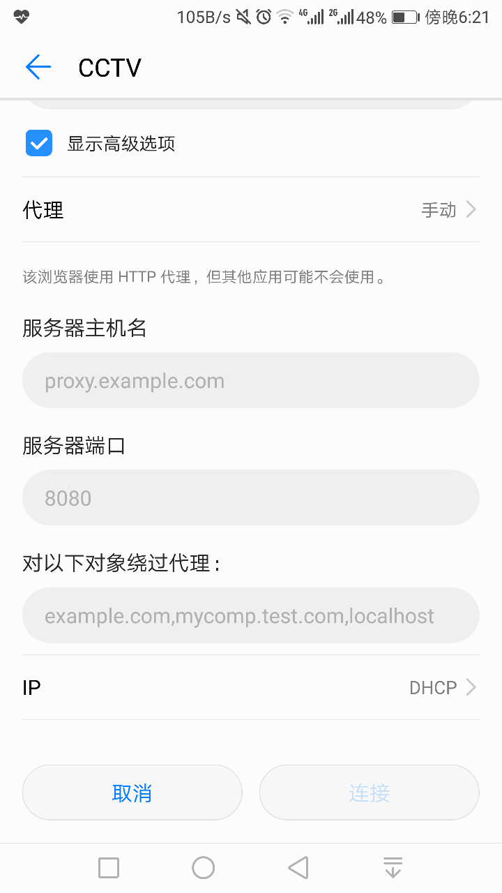 二、手机设置代理(应该在录制之前就把手机代理设置好,并且所连无线需显示不可上网,如下图。才可连接成功)
