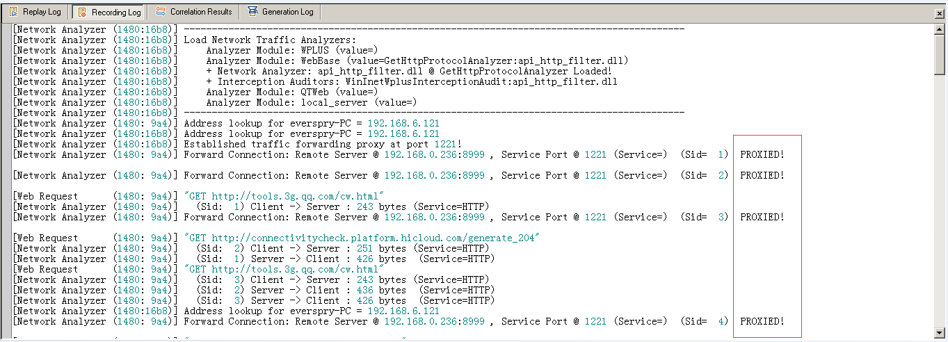 在整个过程中,最大的问题就是开始录制显示连接不上,失败,显示最后一行为: [Net An. Error (140c:1cc0)] Request Connection: Remote Server @ 127.0.0.1:11111 (Service=) NOT PROXIED! (REASON: Unable to connect to remote server: rc = -1 , le = 0)