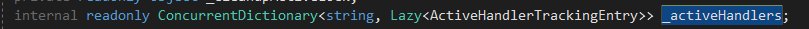 ActiveHandlerTrackingEntry entry = this._activeHandlers.GetOrAdd(name, this._entryFactory).Value; this.StartHandlerEntryTimer(entry); return (HttpMessageHandler) entry.Handler;
