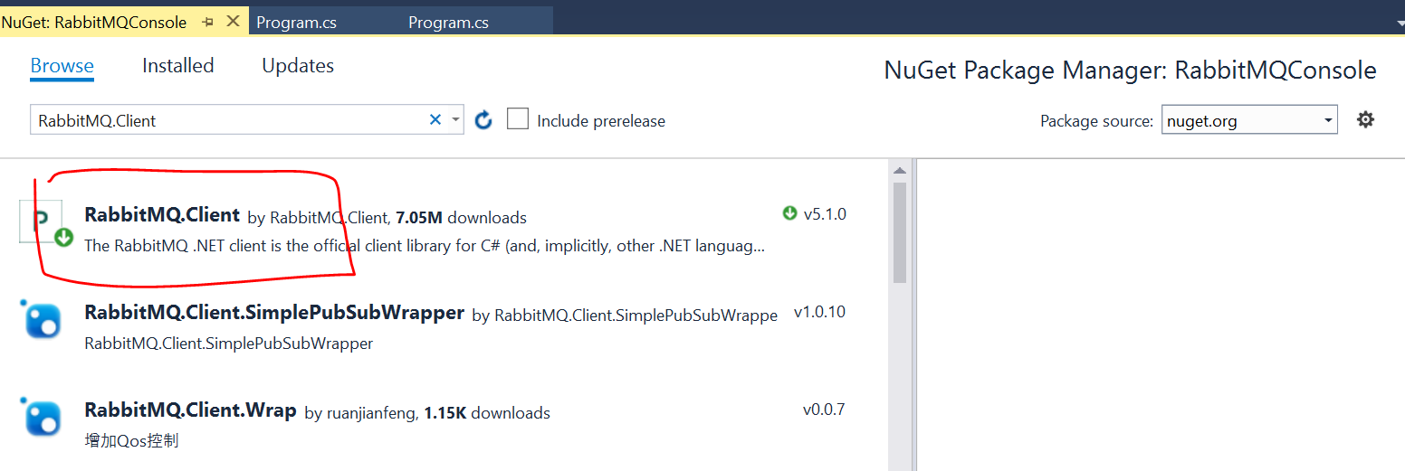 1.新建.netcore console项目,并引入RabbitMQ.Client的Nuget包