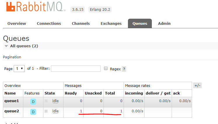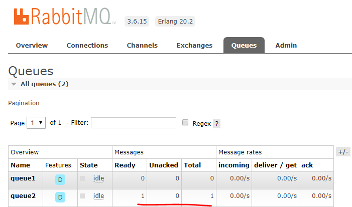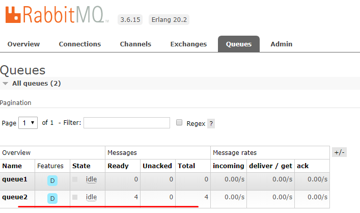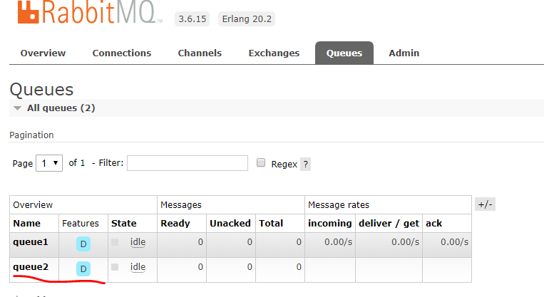 channel.QueueDeclare(queue, durable: true, exclusive: false, autoDelete: false); #创建queue2