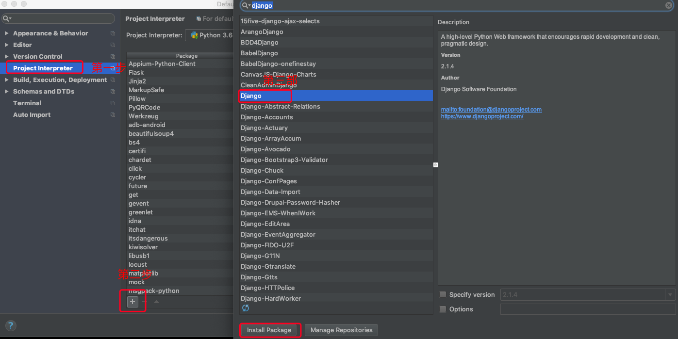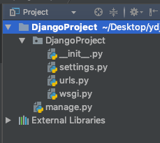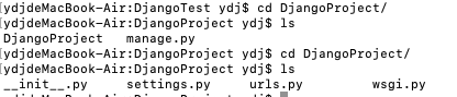 终端中生成Django项目,执行命令:django-admin startproject DjangoProject