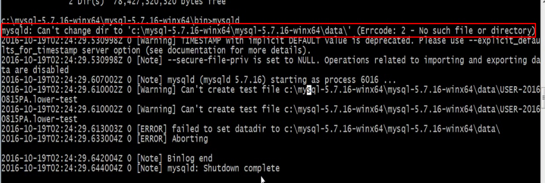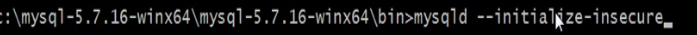 同样先进入安装目录执行命令:mysqld --initialize-insecure 。这是初始化一个用户名为root的用户,没有密码: