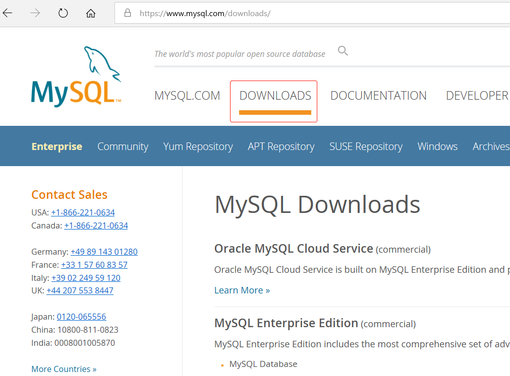 1.1,打开https://www.mysql.com/,进入MySQL的官方网站,点击 Downloads,进入 下载中心
