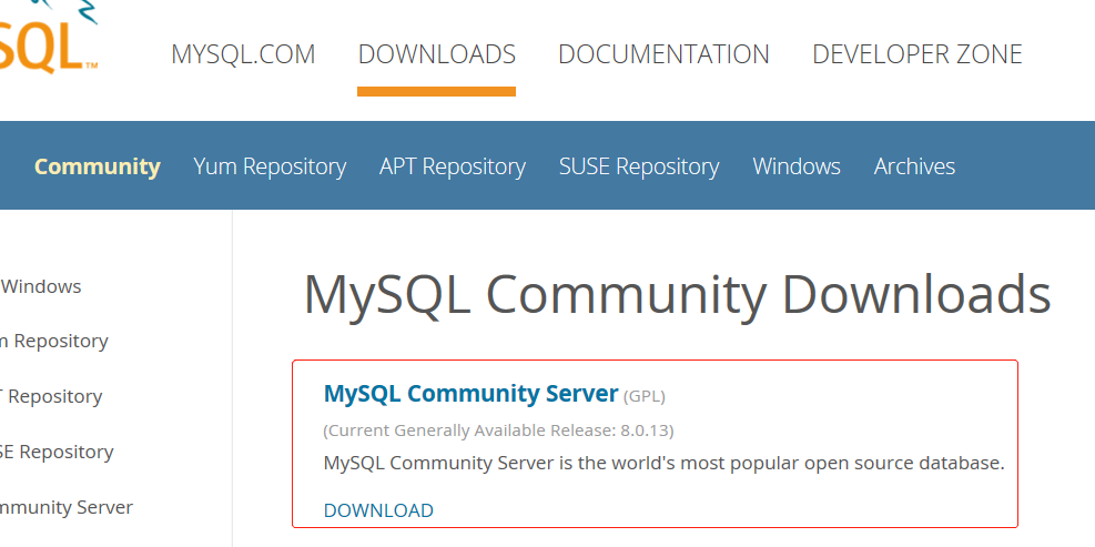 1.2,在 下载中心,滑到页面的最下面,可以看到 MySQL Community Edition(GPL) Community (GPL) Downloads » 的字样,点击 Community (GPL) Downloads »