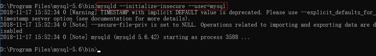 2.5,输入 mysqld --initialize-insecure --user=mysql 回车