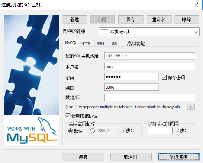 your username 和 your password 改成 mysql 数据库的用户和密码