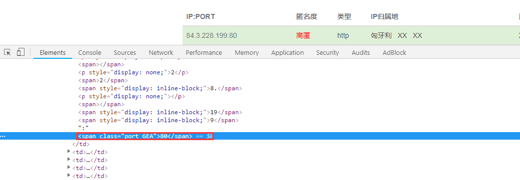 首先进入全网代理IP,打开开发者工具,点击查看端口号,看起来貌似没有什么问题: