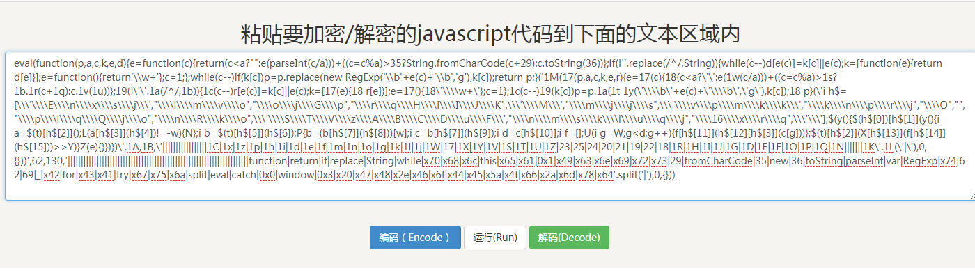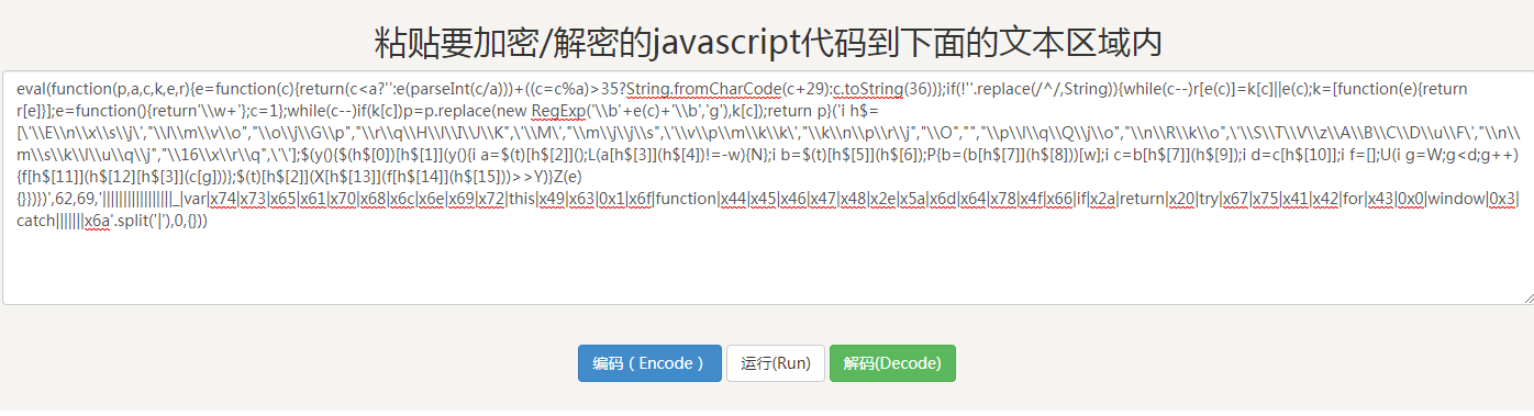 这么复杂的JS代码看得人头都大了,不过我们发现这个JS代码是一个eval函数,那我们能不能把它解码一下呢?这时候你需要一个工具--脚本之家在线工具,把这些JS代码复制进去: