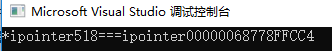 int i = 518;int *ipointer;int* ipointer2;ipointer = &i;ipointer2 = &i;cout << "*ipointer" << *ipointer << "===ipointer" << ipointer << endl; |