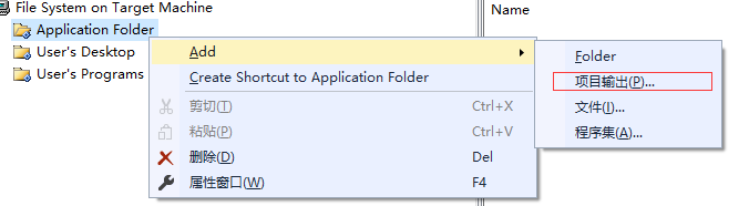 我们先看Application Folder的使用方式,首先选中Application Folder,然后右键—>Add—>项目输出。