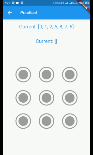 - 先使用画布绘制背景: 九个圆点,每个点带属性是否被选中、颜色、宽度信息。