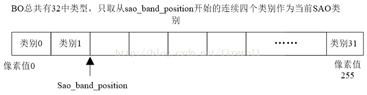 SAO(sample adaptive offset)滤波其实就是对去块滤波后的重建像素按照不同的模板进行分类,并对每一种分类像素进行补偿, 分类模板分为BO(Band offset)和EO(Edge offset)。