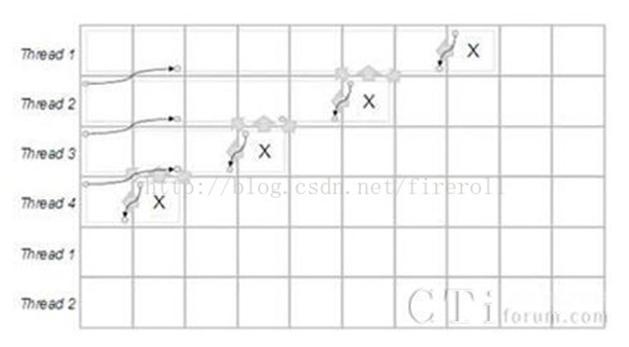上一行的第二个LCU处理完毕,即对当前行的第一个LCU的熵编码(CABAC)概率状态参数进行初始化,如图所示。因此,只需要上一行的第二个LCU编解码完毕,即可以开始当前行的编解码,以此提高编解码器的并行处理能力: