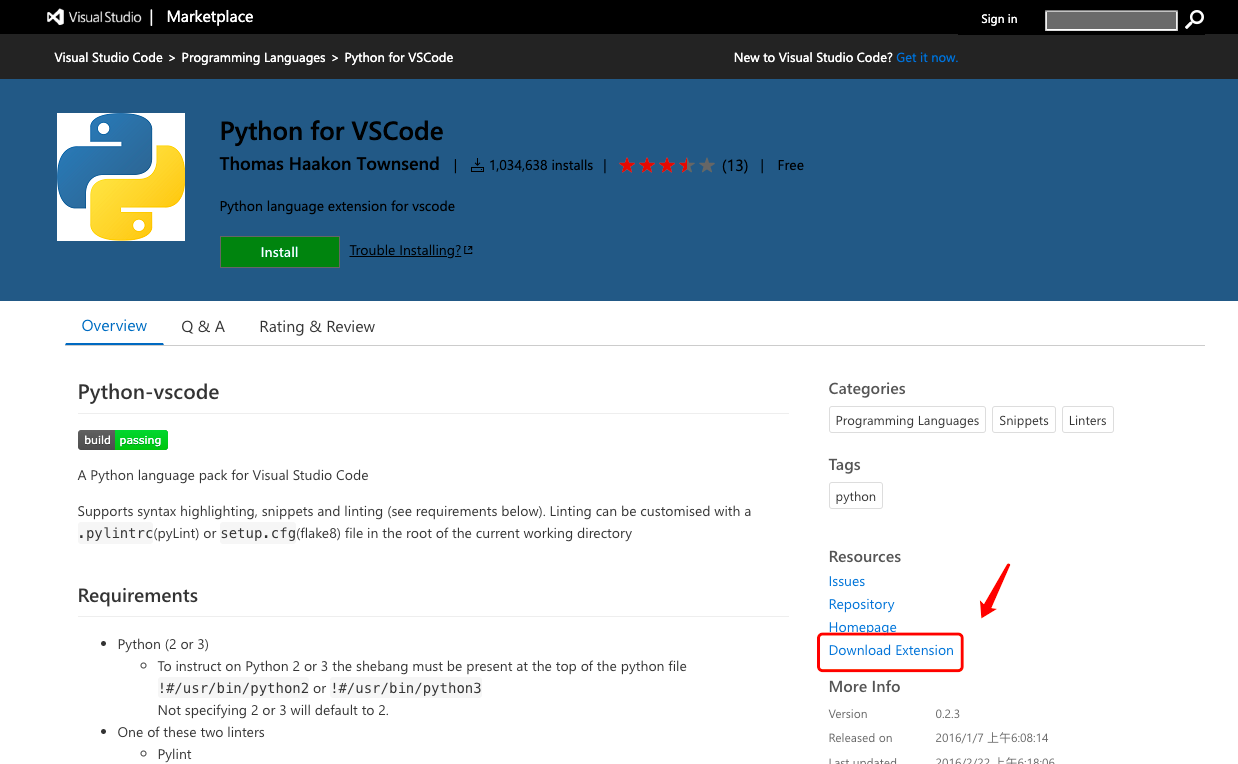 搜索扩展,进入到详情页之后,选择右下角的 Download Extension 下载离线包。