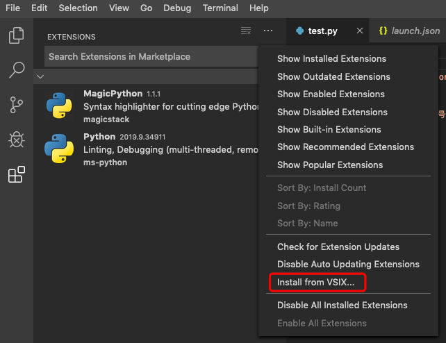 之后在扩展界面选择Install from VSIX,选择路径安装。