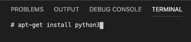 然后在这个 docker 容器中安装 python3,打开 vscode debug 按钮下的命令行,输入如下命令: