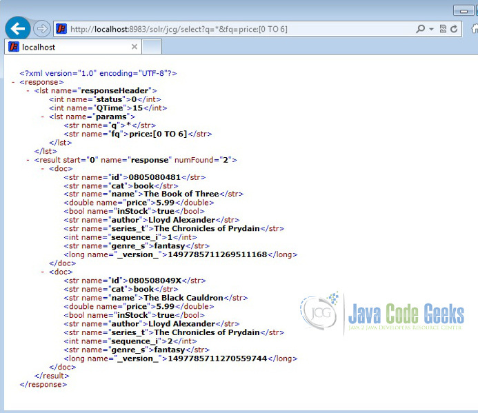 Solr的支持条件的搜索。我们可以设置条件,我们的查询提供了“FQ”参数。在下面我们将告诉你如何查询价格低于¥6的书。