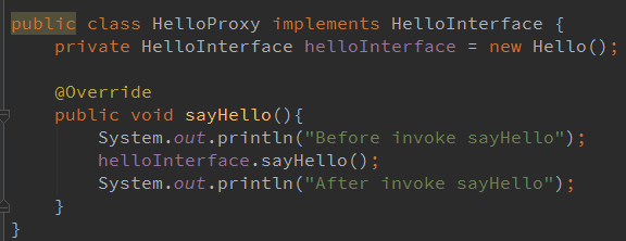 其实就是代理类为被代理类预处理消息、过滤消息并在此之后将消息转发给被代理类,之后还能进行消息的后置处理。代理类和被代理类通常会存在关联关系(即上面提到的持有的被带离对象的引用),代理类本身不实现服务,而是通过调用被代理类中的方法来提供服务。