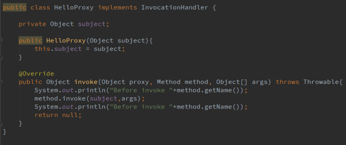 其实在动态代理中,核心是InvocationHandler。每一个代理的实例都会有一个关联的调用处理程序(InvocationHandler)。对待代理实例进行调用时,将对方法的调用进行编码并指派到它的调用处理器(InvocationHandler)的invoke方法。所以对代理对象实例方法的调用都是通过InvocationHandler中的invoke方法来完成的,而invoke方法会根据传入的代理对象、方法名称以及参数决定调用代理的哪个方法。