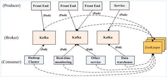 多个 broker 协同合作,producer 和 consumer 部署在各个业务逻辑中被频繁的调用,三者通过 zookeeper管理协调请求和转发。这样一个高性能的分布式消息发布订阅系统就完成了。