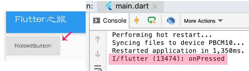 下面是RaisedButton的简单使用,点击按钮会打印日志