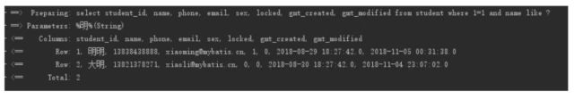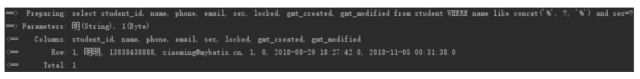 List studentsByName = studentMapper.selectByStudentSelective(search);