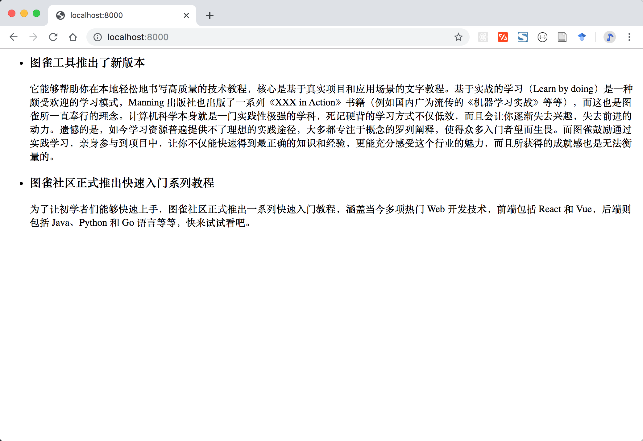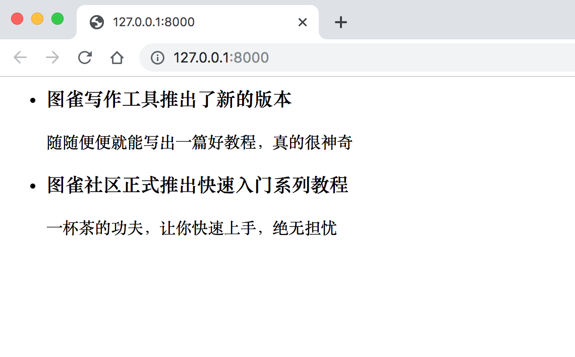 再访问 localhost:8000,看一下我们的首页是不是有内容了: