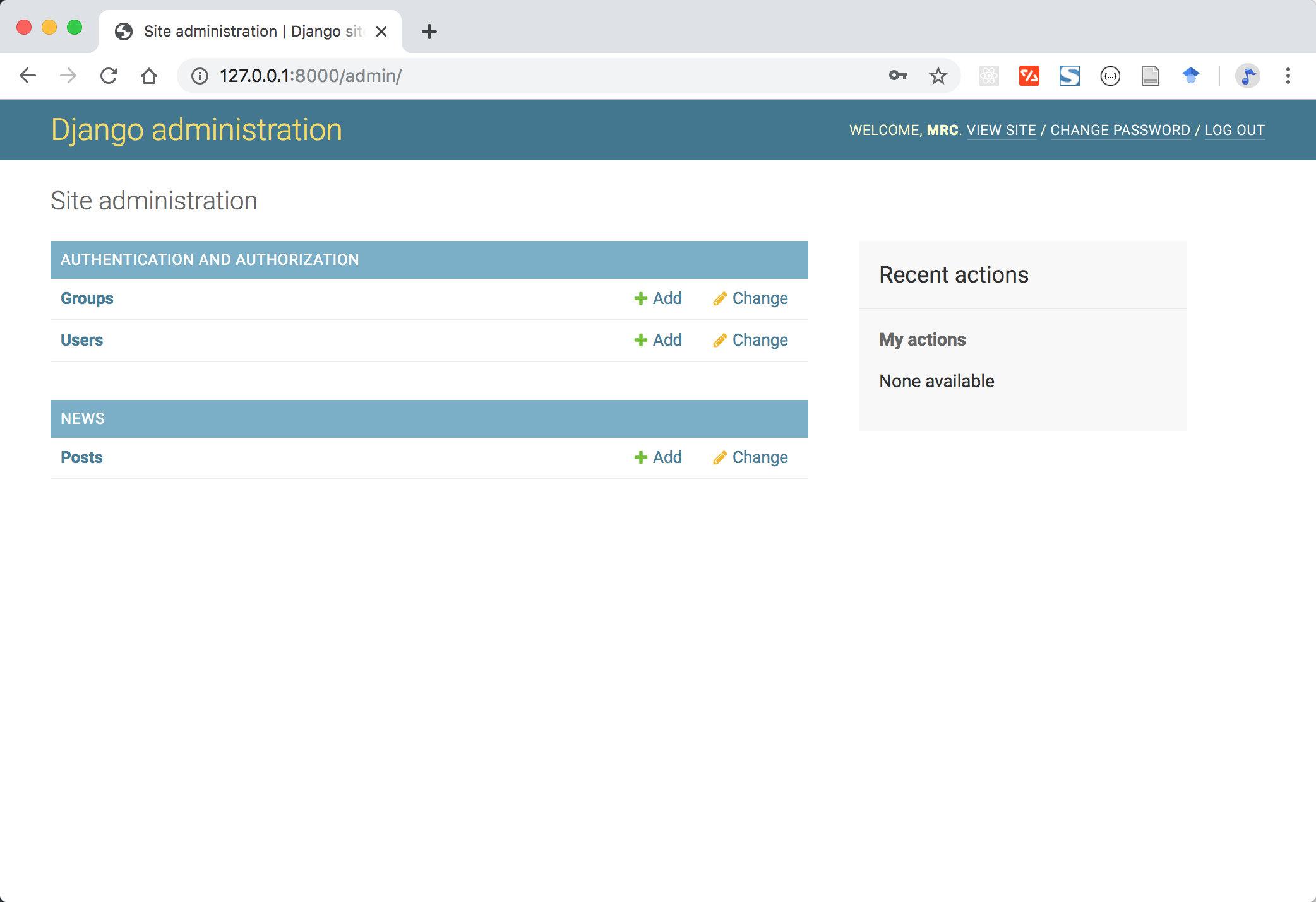 再次进入后台管理系统,可以看到我们的 news 应用和 Post 模型了: