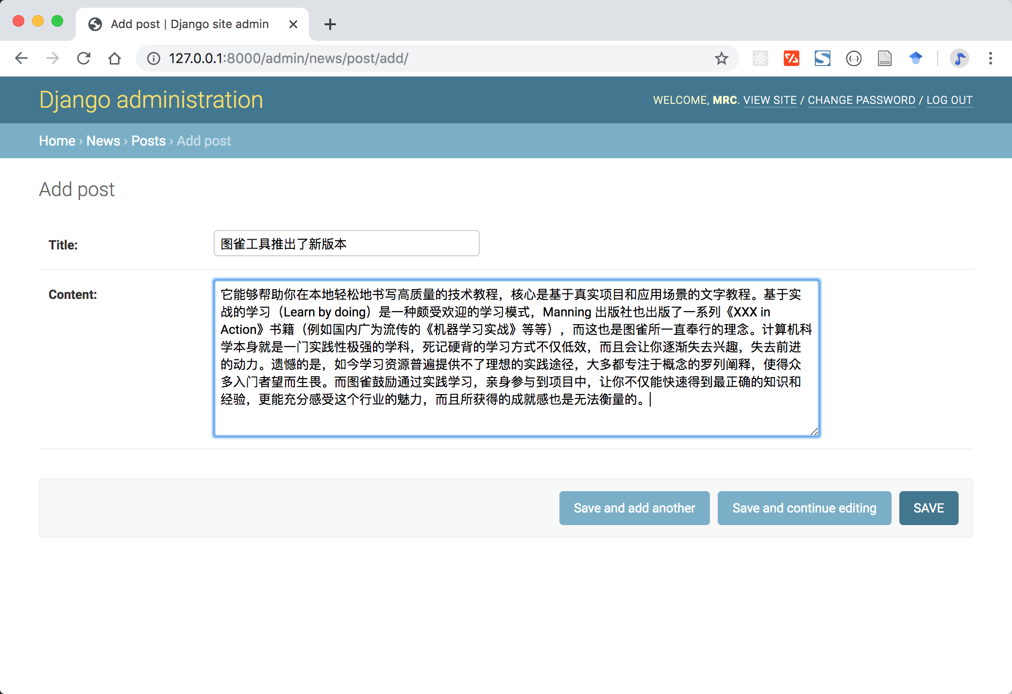 大概添加个两三条新闻就差不多啦。你也可以进一步探索后台管理系统,包括修改新闻、添加用户等等,都可以。
