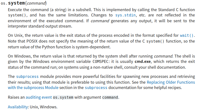 而在 python 中,os.system 是通过调用 C 语言中的 system 函数来实现其功能的: