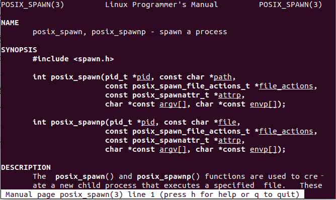 posix_spawn() 函数是用来在Linux上创建子进程的,头文件是 #include <spawn.h> ,语法如下: