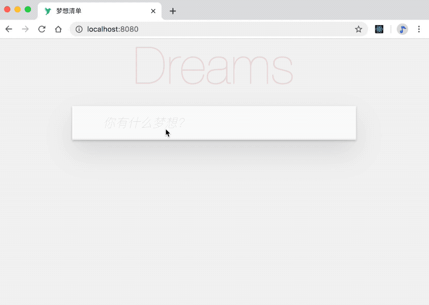 可以看到,我们在最后刷新了几次页面,数据记录也都还在,说明我们带有数据库的全栈应用跑起来了!让我们通过交互式执行的方式进入到数据库容器 dream-db 中,通过 Mongo Shell 简单地查询一波刚才的数据: