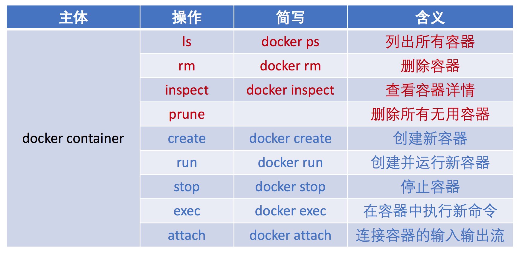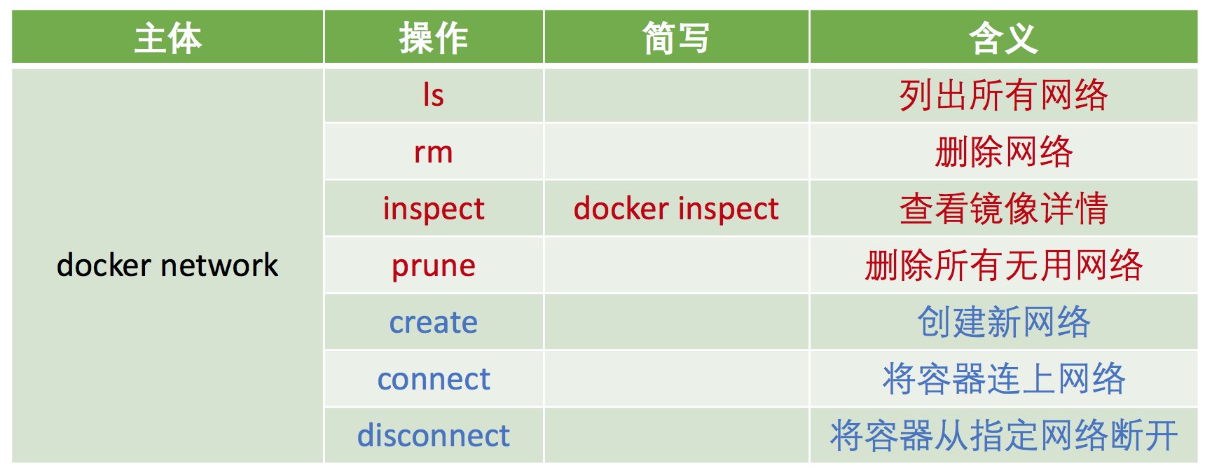 container、镜像image和网络network - 操作名称:操作可以分为两大类:1)适用于所有对象的操作,例如