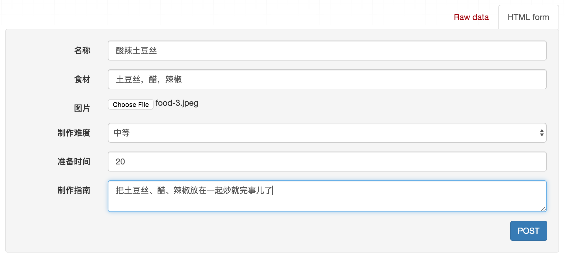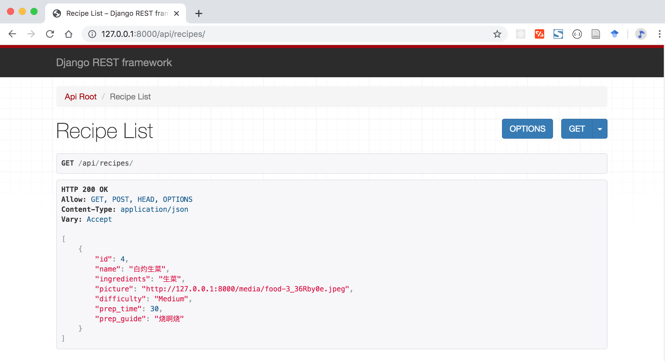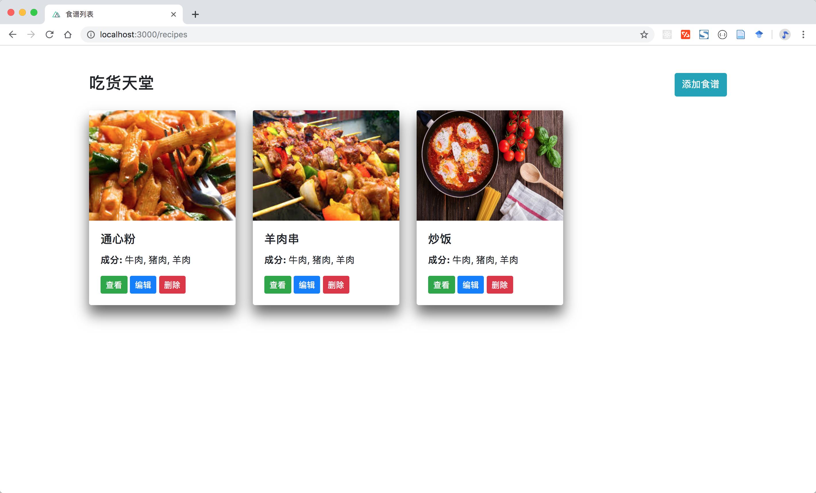 打开前端网站,可以看到我们刚才实现的食谱列表页面:
