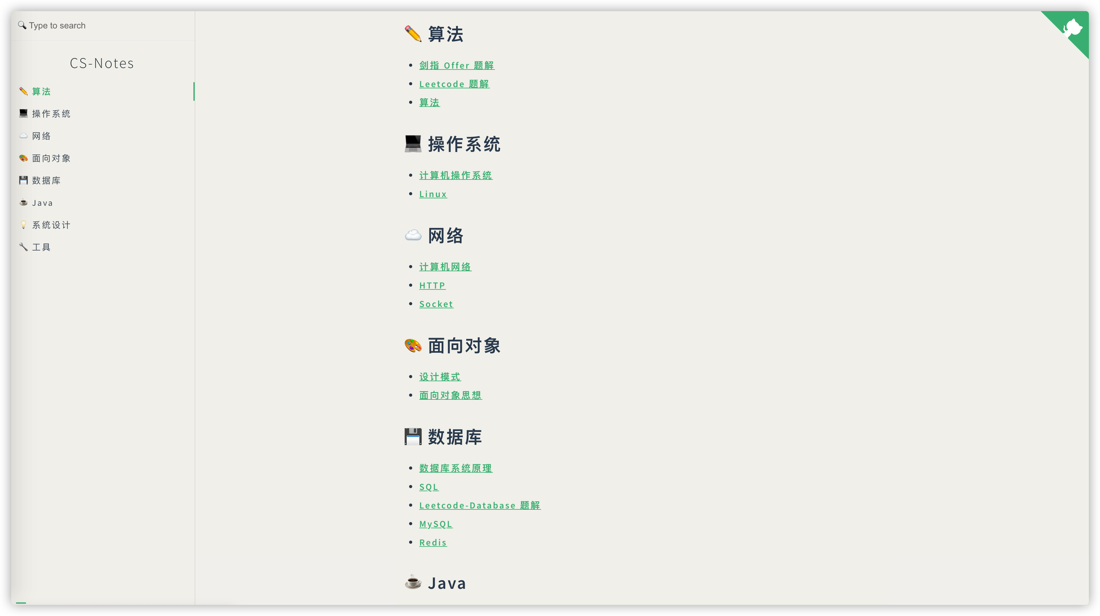 前段时间弄应届生学习指南的时候,整理了几个不错的开源文档,分享给小伙伴们!我觉得应该可以对大家有帮助。